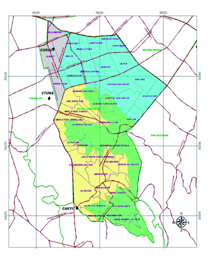 La sede principal sede A atiende población de los ciclos III, IV y V (grados de 6° a 11°) y está ubicada en la calle 40 sur N° 23-25 barrio Quiroga sur, la sede B atiende población de preescolar y básica primaria (grados de 0° a 5°) dos cursos por cada grado en un promedio de 30 a 35 estudiantes por curso y está ubicada en la Calle 40 sur N° 26-90 barrio el Inglés; y por último la sede C que también atiende población de preescolar y básica primaria (grados de 0° a 5°) dos cursos por cada grado en un promedio de 25 a 30 estudiantes por curso y está ubicada en la Calle 40 sur N| 38- 02 barrio El Pesebre o Granjas de San Pablo.(Ver Figura No. 2)